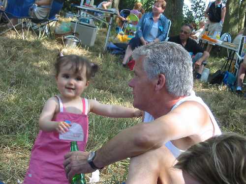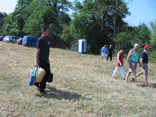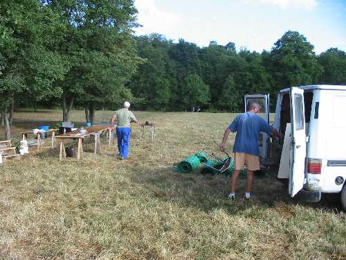 Après avoir été reçu par le comité d'accueil, les cousins ont accroché leur badge à la couleur de leur branche de descendance. Puis ils ont stationné leurs véhicules et ont déchargé leur pique-nique pour le déposer à l'ombre.