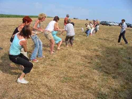 En fin d'après-midi, le soleil étant moins ardent, les cousins sont sortis du bois pour s'affronter au tir à la corde.