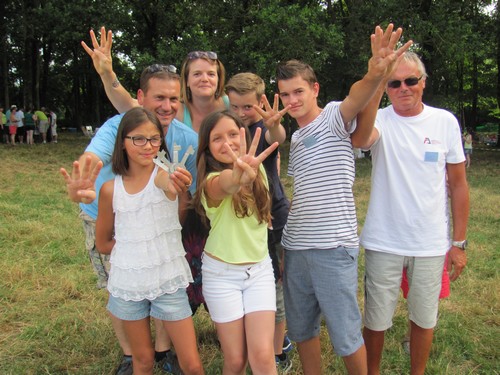 ![]() Voici l'équipe de la famille Bretin prête à relever le jeu du tangram. |