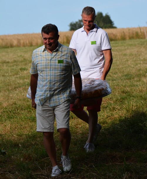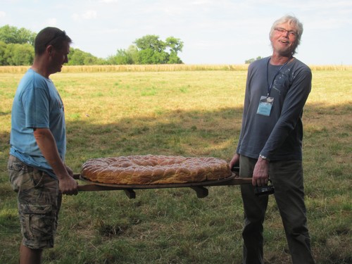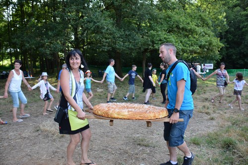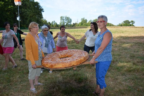 L'arrivée de la brioche suscite toujours l'attention car elle est saluée selon la tradition vendéenne. Posée sur une civière, elle passe de bras en bras et devient le centre d'une farandole. Beaucoup ont voulu partager l'honneur de la porter.